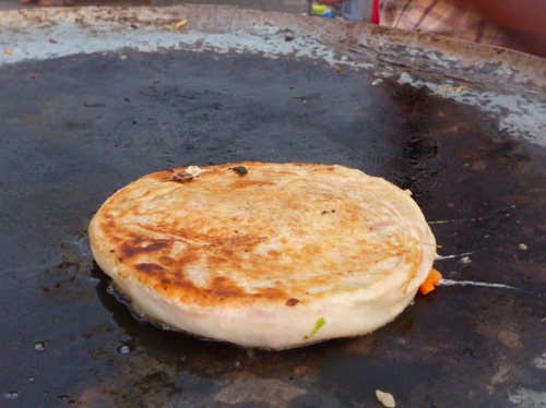 Only being free of my stomach woes from istanbul for a week or so I wanted to play it safe, so we decided to steer clear of the pre cooked dodgy looking meats and go with what the vendors were calling pizza.